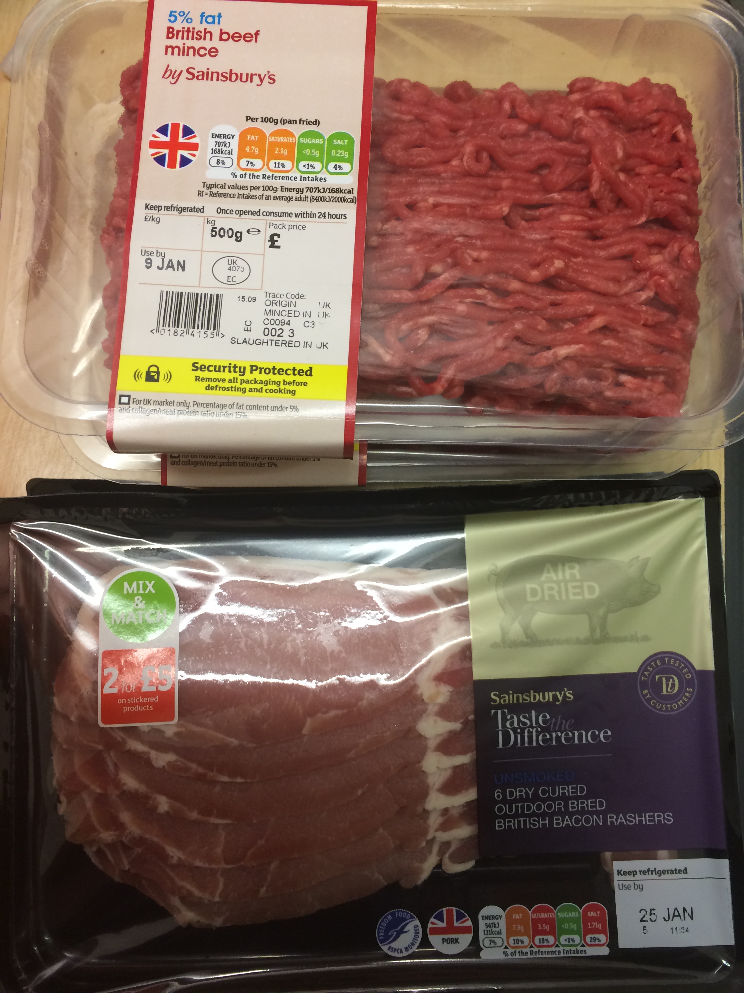 Just bought some bacon and some mince (one to use, one to freeze). Bacon was 2 for £5 and the mince was £3.70 each, so a total of £12.40. Looking forward to making my cottage pie now. I might try the breakfast casserole at some point as well. I think I need to take stock of what frozen meat I have as I’ve kind of lost track and it’ll save me from duplicating purchases before they’re used up 🙂