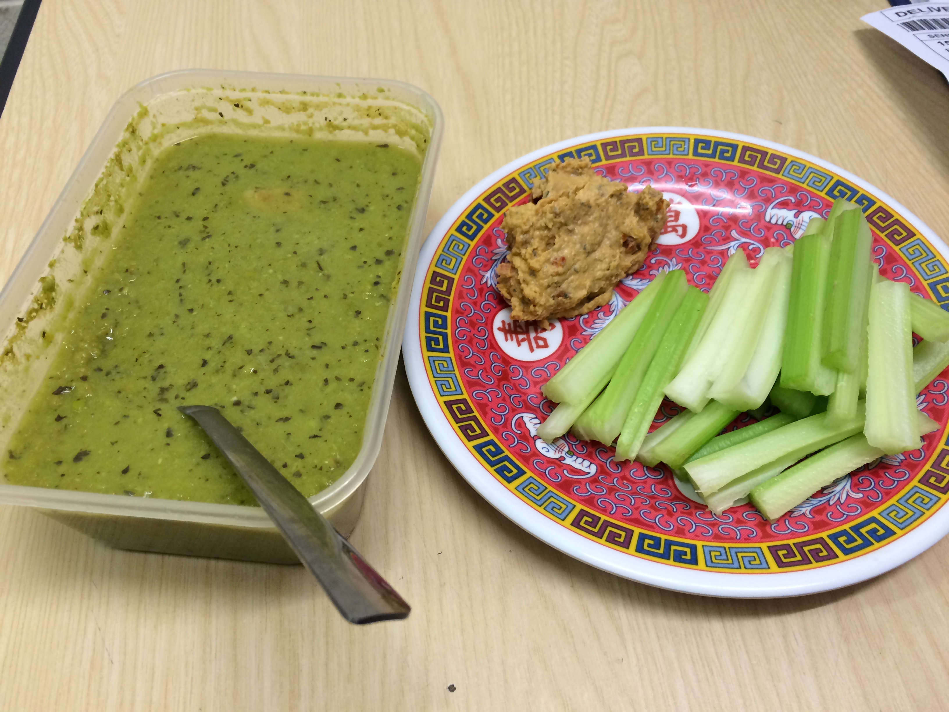 Lunch: pea and gammon soup with celery and 2 tbsp houmous (5 syns)