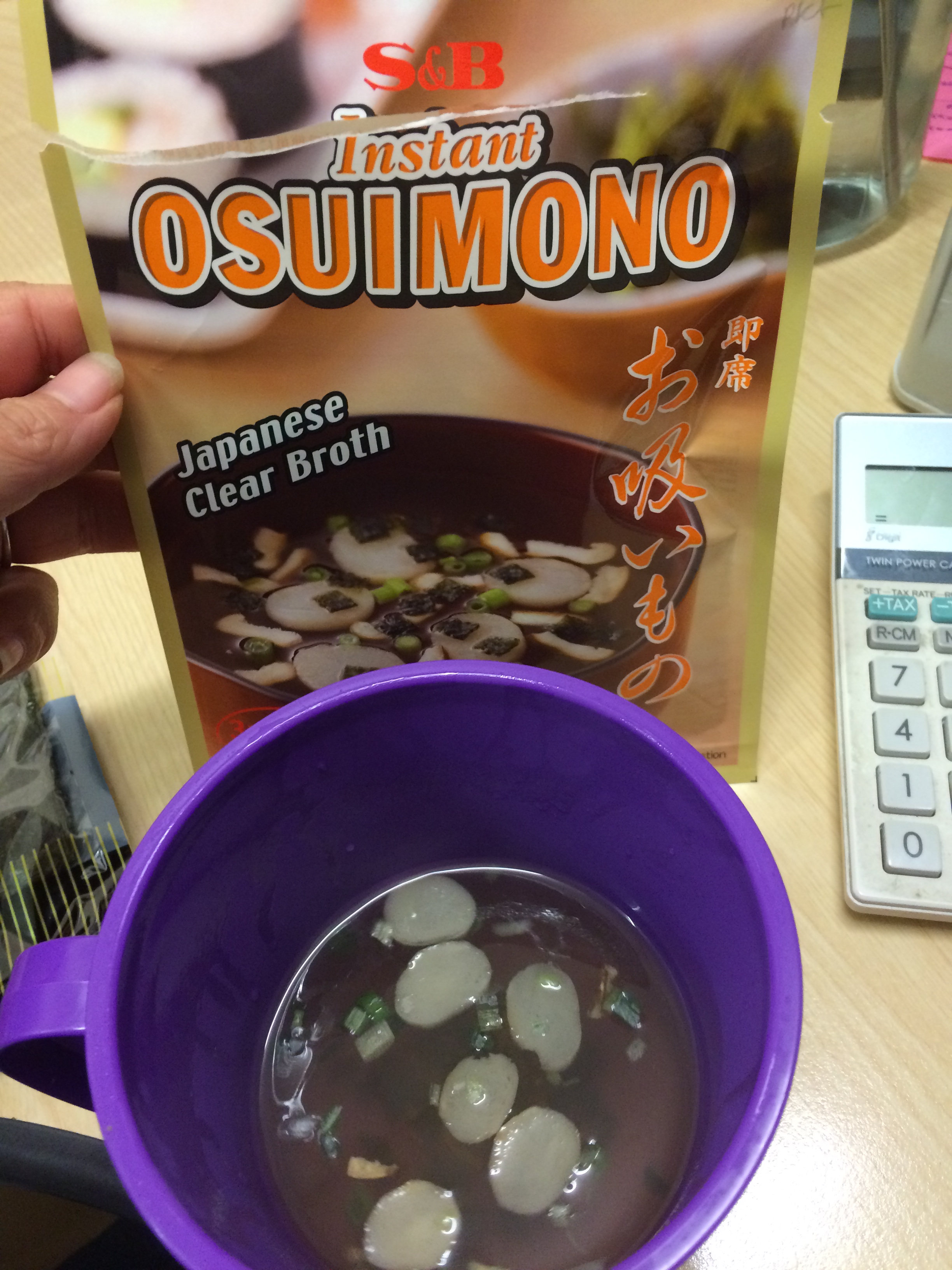 Snacks: S&B Osuimono Soup (0.5 syn), 4 boiled eggs, 2 clementines (S), also 15g wasabi peas (3 syns) and 25g popchips (5 syns)
