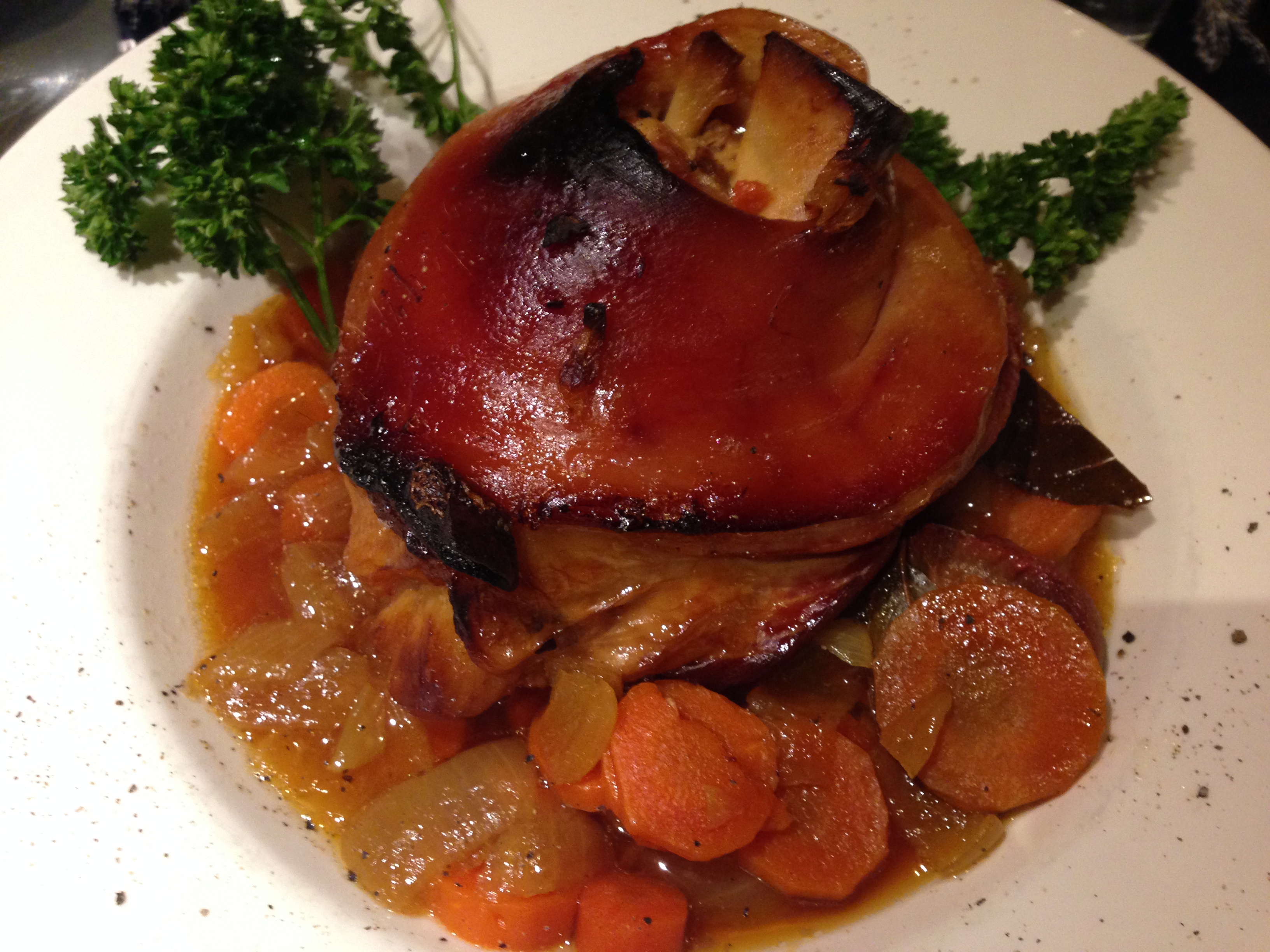 For my main, I got the ham shank. Oh my god, it is the perfect winter dish. Unfortunately, the portion was so humongous that I only managed to eat around half and I couldn’t take it home! The ham had a crisp skin and salty yet moist meat and there was a lovely broth made from ale on the bottom with some slow roasted carrots and onions. I only ate a small part of the skin but it was just divine. Like crackling but less likely to break your teeth. It had a slightly goo-ey texture to it underneath and just so delicious. Honestly, I can’t find the words to describe how gorgeous it is and perfect to counteract the freezing evening we decided to turn up.