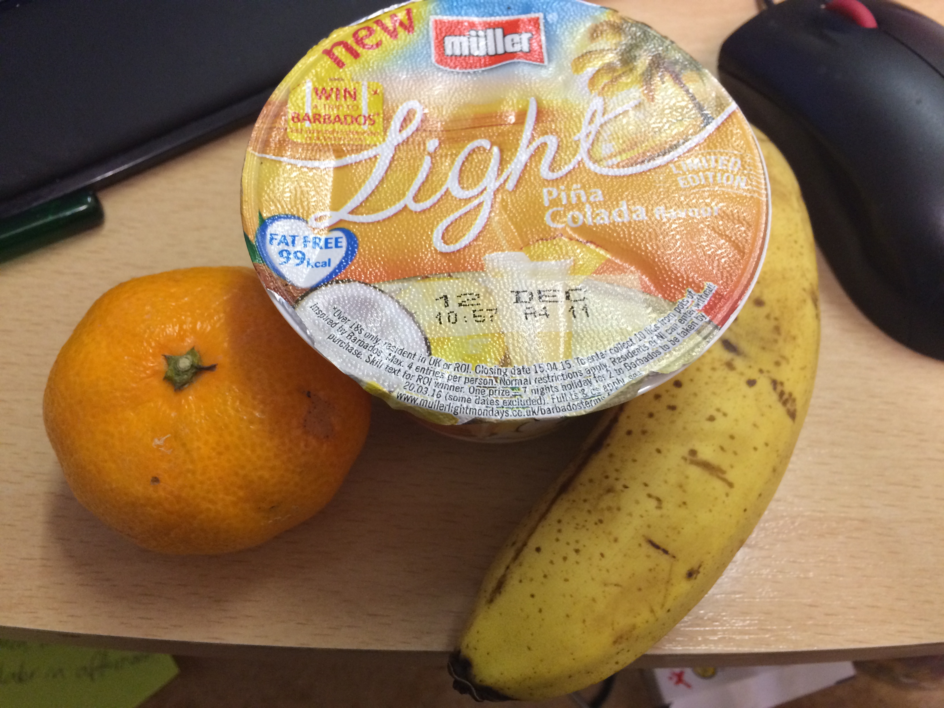 Lunch: chicken & sweetcorn soup (0.5 syn), muller light, banana, clementine