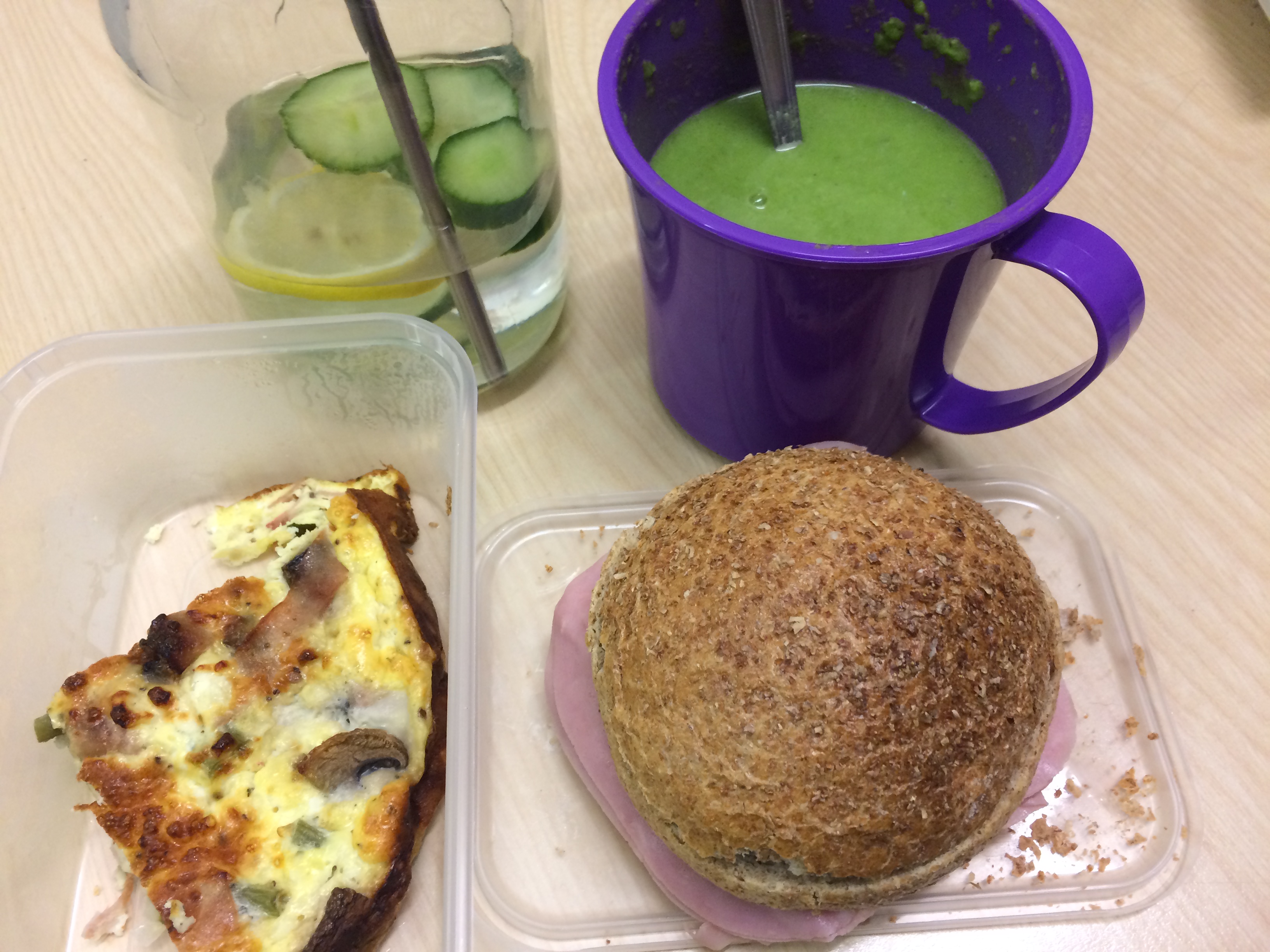 Lunch: ham and light sandwich spread on wholemeal sandwich thins x2 and a Dairy Milk oat crunch.
