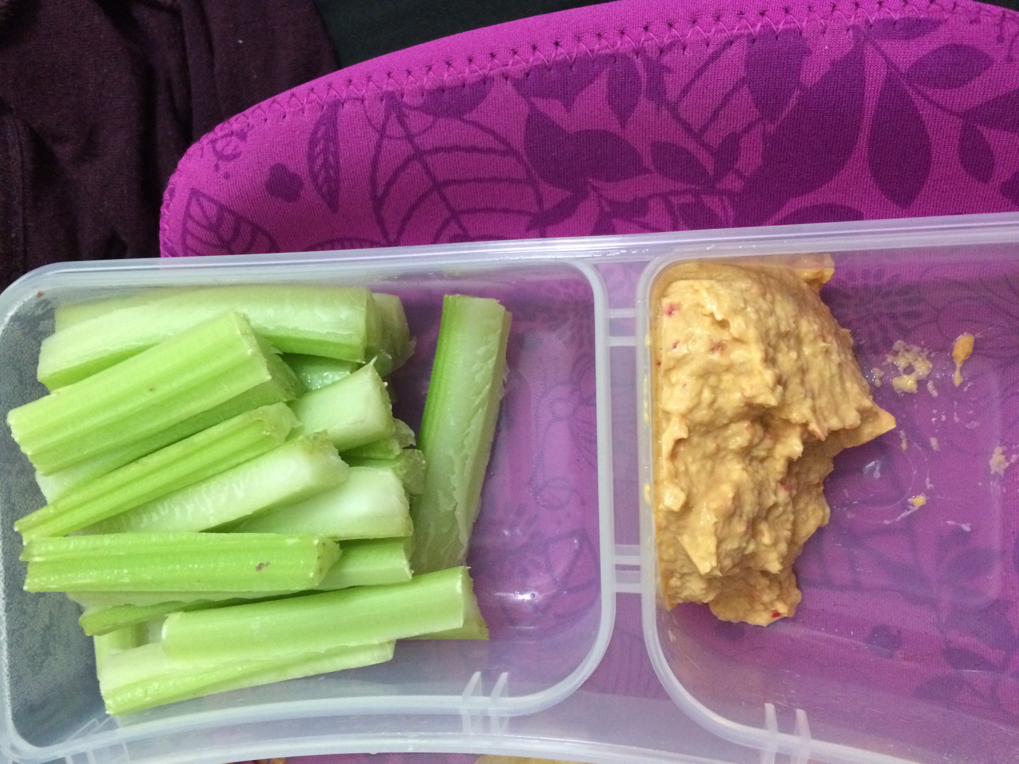 Snack: two boiled eggs (p) with celery sticks (s) and 2 tbsp jalapeno houmous (5 syns) with strawberry & cucumber infused water