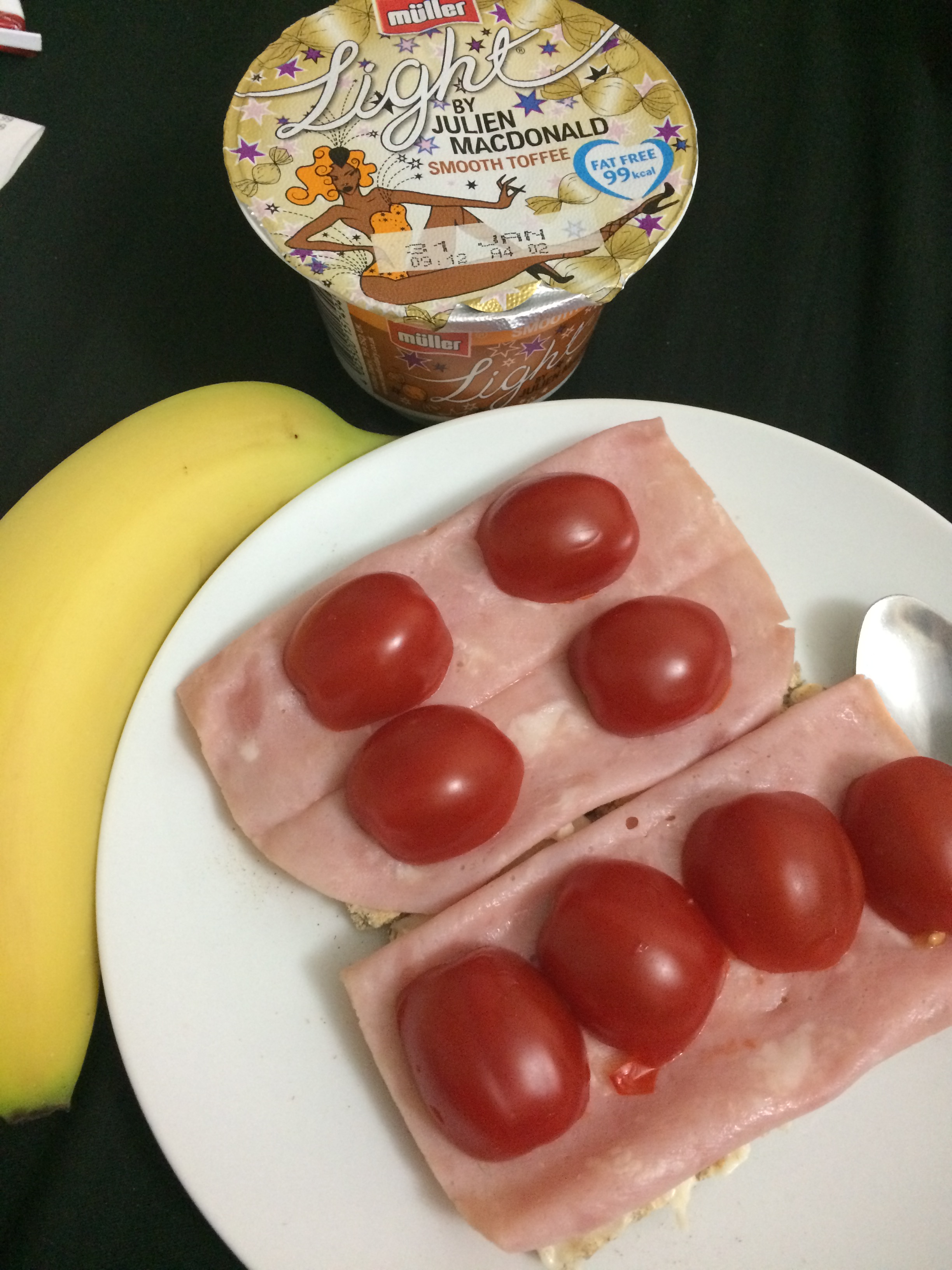 Sorry for the dodgy lighting! Snack was this ham salad from Asda and a flat peach (not pictured) as I was having dinner made by my ex and he wasn’t home until quite late.
