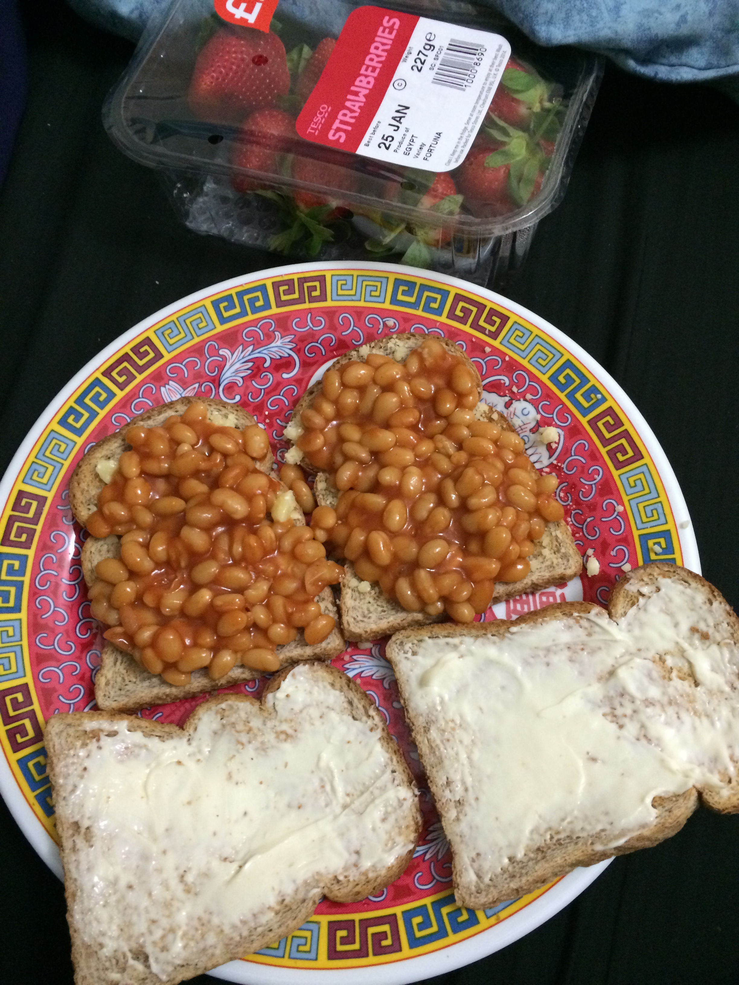 Breakfast: bacon, egg, beans (ss) and mushrooms (s)